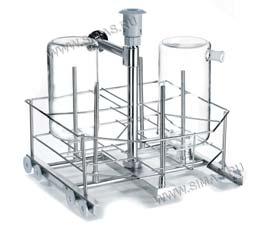 Тележка из нержавеющей стали с подключением к системе сушки. Предназначена для мойки крупноразмерной стеклянной посуды. Возможна одновременная мойка двух 10-литровых и двух 5-литровых бутылей (например, типа Schott). Оснащена 8 специальными инжекторами. Устанавливается на нижнем уровне.