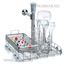 Тележка из нержавеющей стали с подключением к системе сушки. Предназначена для мытья пипеток и колб (20 шт. пипеток высотой до 550 мм и 20 единиц посуды с узкими горлышком высотой до 49 см). Оснащена 38 инжекторами. Устанавливается на нижнем уровне.