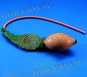 Литая каучуковая груша, объемом приблизительно 60 мл, с тремя клапанами, содержащими стеклянные шарики, которые можно контролировать нажатием пальца. Не имеет металлических частей, которые могли бы корродировать, следовательно, может использоваться с любыми жидкостями, кроме разъедающих резину. Подходит для цилиндрических пипеток объемом 2 – 50 мл. Поставляется с адаптером для пипеток объемом более 20 мл.