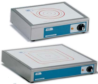 Электронный регулятор мощности нагрева. Не коробящаяся плитка из нерж. стали с нагревательными элементами, равномерно распределенными по поверхности для равномерного распределения тепла. Корпус из нерж. стали AISI304.