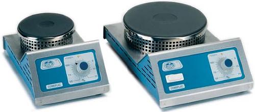 Электронный регулятор мощности нагрева, нагревательные элементы равномерно распределены по поверхности плитки из нержавеющей стали; плитка не деформируется. В задней части прибора есть отверстие для закрепления лабораторной стойки. Корпус из нерж. стали AISI304.