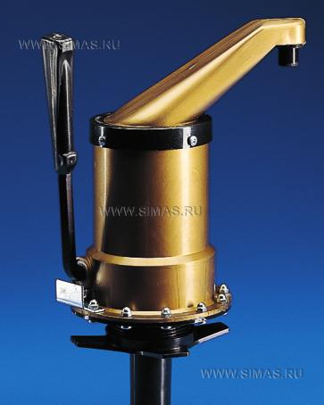 Насос-дозатор из полипропилена, управляется нажатием на рычаг, при этом перекачивается ок. 22-23 литров в минуту. За один ход перекачивается ок.300 мл. Позволяет работать с высоковязкими жидкостями (экв. масла SAE 90). Выходная трубка может вращаться на 360°. В комплекте с подающей трубой.