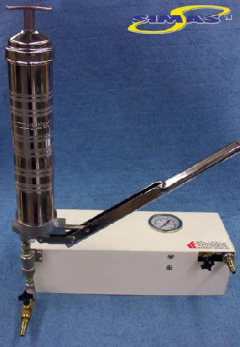 Состоит из 25-и футовой спиральной трубки и двух клапанов. Один клапан находится со стороны прибора, а второй со стороны где присоединяется смазочный пистолет. Для определения размера и максимальной длины магистрали, необходимо увеличить давление с помощью смазочного пистолета, при закрытом клапане. При установившемся постоянном давлении 1800 psi, открыть второй клапан. И в течение 30 секунд после открытия клапана, считывать показания давления. Электропитание: нет. Размеры (ДxШxВ): 38.1 х 15.2 х 12.7 см.