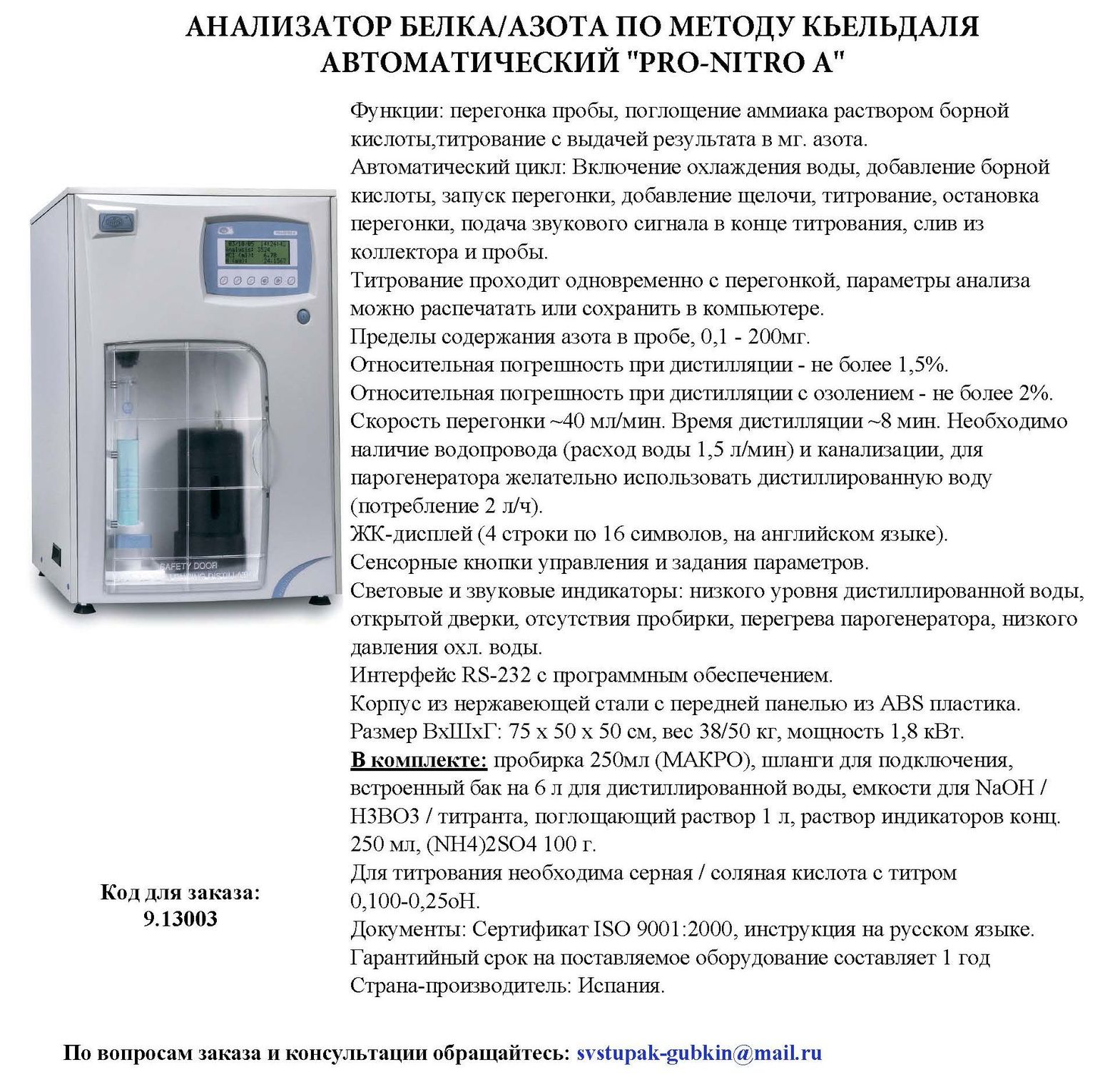Запросить счёт АНАЛИЗАТОР БЕЛКА/АЗОТА по методу Кьельдаля "PRO-NITRO A"
