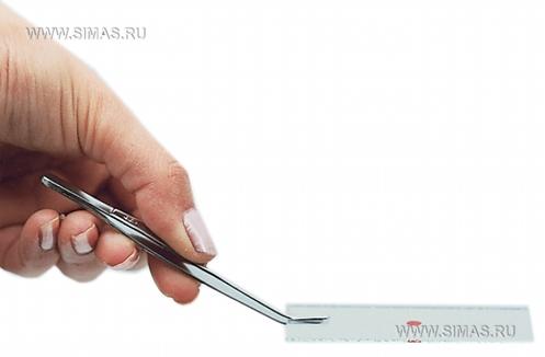 Описание: Из нерж. стали AlSI 304 с плоскими браншами. Длина 105 мм. Для захвата мелких плоских предметов, предметных и часовых стекол.