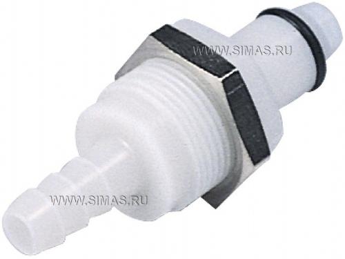 Быстроразъёмные соединения штырькового типа, Патрубки для монтажа на корпус, с резьбовыми наконечниками, номинальный диаметр отверстия 6.4 мм