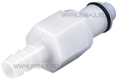 Быстроразъемные соединения гнездового типа, Соединения, 100% пластик, без металлических частей, без клапана, номинальный диаметр отверстия 6.4 мм