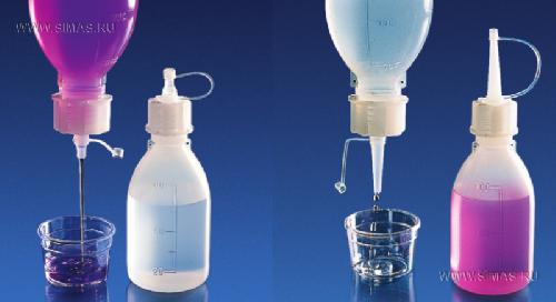 Подходят к стандартным бутылкам с узким горлом 5.2A052, 5.2A053, 5.2A054, 5.2A055, 5.2A056, 5.2A057, и стандартным бутылкам с широким горлом 5.2A035 и 5.2A036. Носик закрывается полиэтиленовым колпачком.