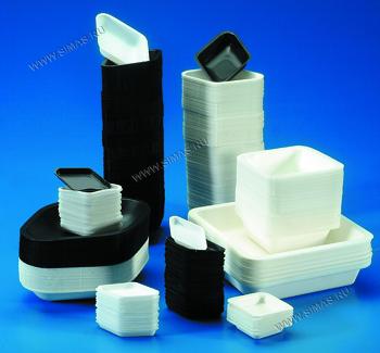 Изготовлены из полистирола высокой плотности, имеют плоское основание, закругленные края и гидрофильную поверхность, не притягивающую загрязнения. Гибкие, удобны для взвешивания как жидких, так и твердых образцов.