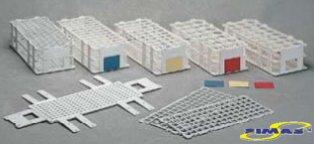 Двухуровневый штатив для пробирок, цветовая гамма представлена четырьмя цветами; представляет собой универсальную опору, выдерживает автоклавирование, может использоваться как в сухой среде, так и на водяной бане и в морозильной камере. На каждом штативе имеются выгравированные буквенно-числовые изображения, облегчающие распознание образцов.