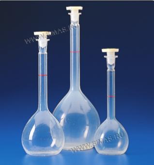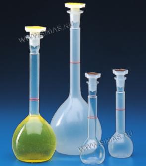Мерные колбы, в которых полностью отсутствует образование мениска, что облегчает измерение объема, калиброваны гравиметрическим методом при температуре +20°C, представляют собой цельно штампованное изделие из прозрачного, особенно при контакте с жидкостями полипропилена. Форма узкого горлышка обеспечивает высокую точность показаний. Выдерживают автоклавирование, характеризуются более высокой химической чистотой в сравнении со стеклом, благодаря отсутствию способности поглощения химических веществ. Поставляются в комплекте с крышками. Пригодны для продуктов питания.