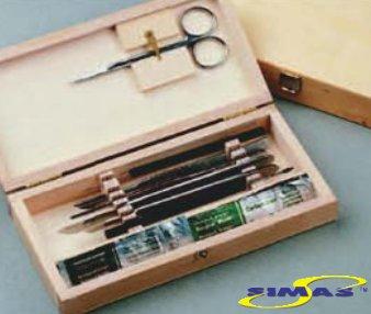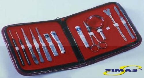 Содержит: 1 зонд с тонким концом, 1 ланцет, 1 пинцет с тупыми концами, 1 пинцет с тонкими концами, 1 ручка для скальпеля No 4, 3 стерильные лезвия для ручки No 4, 1 ножницы, 1 лупа, 1 прямой зонд, 1 скальпель.