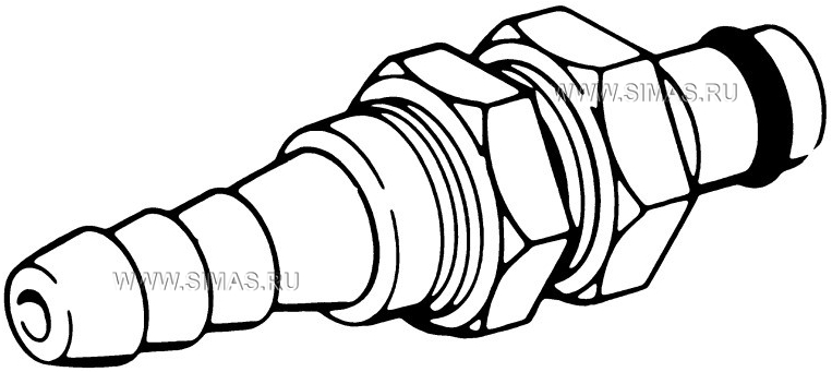 Быстроразъёмные соединения штырькового типа, Патрубки для монтажа на корпус, с резьбовыми наконечниками, номинальный диаметр отверстия 6.4 мм