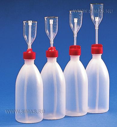Промывалки с широким горлом обеспечивают быстрое и удобное наполнение жидкостью. Трубка и крышка являются единой конструкцией, которая препятствует вытеканию жидкости через крышку при надавливании. Для идентификации жидкостей предусмотрены крышки четырех цветов. Идеальны для работы с токсичными и едкими веществами.