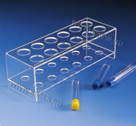Описание: Прочные штативы из ПММА (плексиглас), отверстия более мелкого диаметра на нижнем ярусе прочно удерживают пробирки.