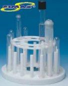 Описание: Изготовлен из полиэтилена, вмещает четыре пробирки диаметром 25 мм, 8 пробирок диаметром до 19 мм и имеет 16 боковых штырей для надевания пробирок вверх дном. Размеры: высота 95 мм, диаметр 180 мм.