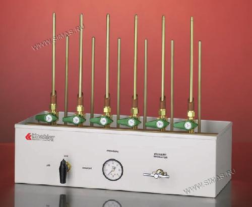 Чистка и сушка стеклянных капиллярных вискозиметров с использованием растворителя и сжатого фильтрованного воздуха. Используется для всех типов кинематических вискозиметров. Чистка шести трубок одновременно.