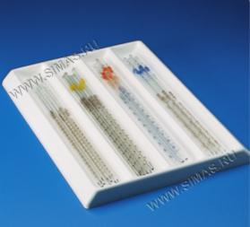Вмещает около 30 пипеток. Имеет 4 отделения для пипеток объемом 1 – 2 – 5 – 10 мл. Размеры: 300 х 426 х 30 мм.