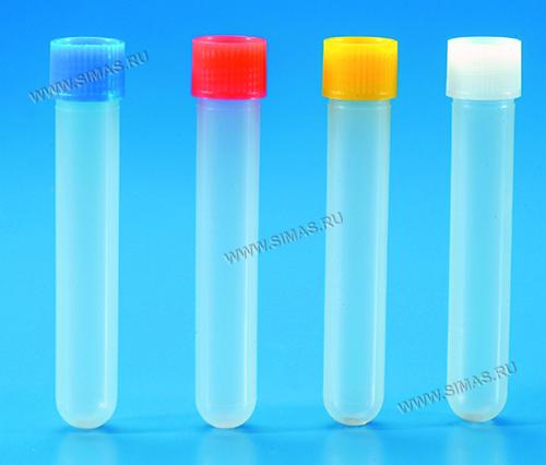 Снабжены полипропиленовыми плотно завинчивающимися крышками. Стерильные пробирки снабжены красными крышками.