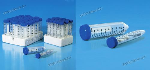 Конические пробирки объемом 15 и 50 мл, изготавливаются из полипропилена высокой прозрачности, имеют специальную белую поверхность для надписей. Устойчивы к температурному воздействию от -80°C до +121°C. Снабжены герметичными, завинчивающимися крышками синего цвета, с загнутым краем, облегчающим открытие и закрытие. Дно конической формы для полного восстановления образца. Способ нанесения волюметрической разметки обеспечивает ее отличную видимость; на пробирках объемом от 2 до 15 мл цена деления составляет 0,5 мл, на пробирках от 5 до 50 мл – 2,5 мл. Могут использоваться с центрифугой: пробирки 15 мл выдерживают до отн. центр. сил 6.200 x г, а пробирки 50 мл - отн. центр. сил 9.400 x г. Стерилизованы посредством излучения с бета-ионами. Идеальны для сбора и транспортировки проб. Не выделяют тепла, выдерживают автоклавирование, снабжены маркировкой ЕС согласно директиве 98/79/CE.