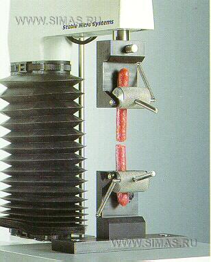 Испытание прочности на разрыв лакрицы с помощью самофиксирующихся роликовых зажимов.