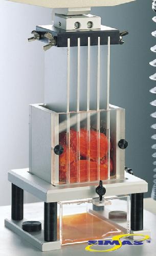 Ячейки имеют передние панели из перспекса для точного расположения лезвий относительно образца и быстрого извлечения для очистки ячейки. Ячейка используется для анализа продуктов, состоящих из частиц, например, зерновых или пикулей в соусе, а также фруктов и овощей. Это испытание сочетает сжатие, сдвиг и экструзию.