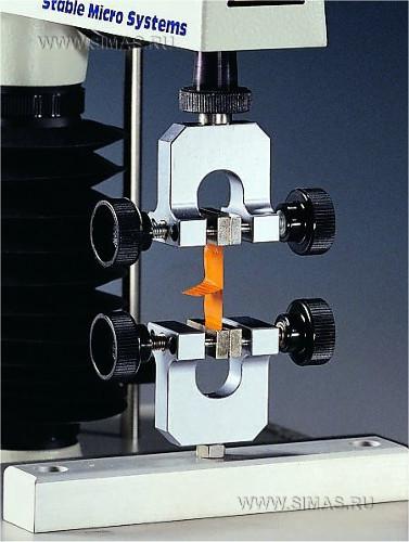 Во время испытания записывается максимальная сила, требующаяся для разрыва продукта (прочность на разрыв). К другим примерам этой насадки относятся измерение упругости и снятие напряжения.