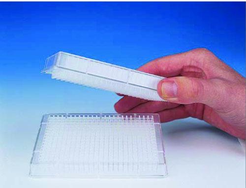 Описание: Созданные специально для автоматических дозирующих систем Biomek 2000 и F/X, охватывающие адаптеры устраняют многие проблемы, с которыми часто приходится сталкиваться во время работы с общепринятыми вакуумными системами. Например, перекрестная контаминация, лишние стадии подготовки пробы и необходимость разделительных пластинок. Адаптеры выпускаются двух размеров и подходят для закрепления самых разных планшетов Уатман – маленькие для планшетов с лунками объемом 300 мкл для сбора и фильтрования проб (около 14 мм в высоту), средние для планшетов 800 мкл (около 30 мм в высоту). Химически стойкие и легко устанавливаются; гарантируют высокое качество работы при использовании высокопроизводительных методик. При удалении жидкости вакуумным отсосом во время промывки 96 луночный планшет с направляющими желобками гарантирует фильтрацию содержимого каждой отдельной лунки без взаимодействия благодаря разделению потоков жидкости из отдельных лунок.