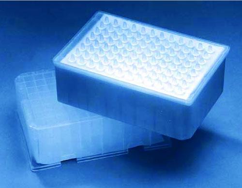 Описание: Микропланшеты UNIPLATE на 96 и 384 лунки идеально подходят для методик, требующих малого объема пробы. Вертикальные боковые стенки лунок в сочетании с ‘V’ –образным дном каждой лунки гарантирует сбор материала в их основании. ‘V’ – образное дно обеспечивает максимально полный сбор пробы, обычно удается добиться более чем 99% использования пробы.