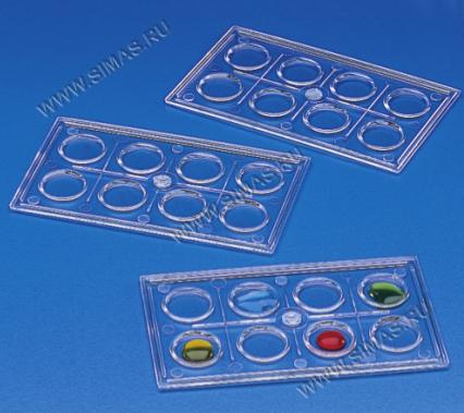 Описание: Микропланшета UniCell на 24 лунки –универсальный продукт, созданный специально для культур тканей. Микропланшета UniCell на 24 лунки состоит из трех компонентов: • Фильтровальный микропланшет на 24 лунки с поликарбонатными мембранами 0.4 мкм • Нижний планшет на 24 лунки с круглыми стенками объемом 3.5 мл (для питающего слоя) • Крышки из полистирола Поликарбонатные мембраны идеальны для культур клеток, так как они не токсичны и не подавляют клеточного роста. Это идеальный материал для получения непрерывного монослоя клеток млекопитающих. Мембрана сохраняет свою прочность во влажном состоянии, позволяя отделять клетки путем отмывки или механического отделения от мембраны. Микропланшеты UniCell Культуральная лунка верхнего планшета плотно вставляется в лунку нижнего планшета. Каждая лунка герметично закрыта и расположена в своей собственной нижней питательной лунке. Все планшеты стерилизованы гамма-облучением и имеют специально обработанную для культивирования клеток поверхность. Зазор между низом мембраны и низом лотка 2 мм. Применение • Изучение проницаемости • Co-культивация • Резистентность ткани • Миграция клеток • Токсикология