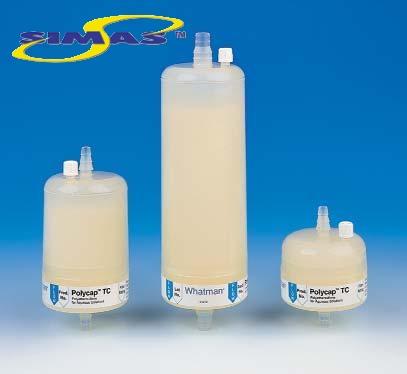 Свойства и преимущества • Капсулы Polycap TC/PES с порами 0.1, 0.2 и 0.8/0.2 мкм прошли тест HIMA для стерилизующих фильтров • 100% фильтров проходит испытание на целостность; результаты коррелируют со способностью к задержанию микроорганизмов • Швы корпуса термически сварены (при производстве не используется клеящих веществ или составов для облегчения выемки из формы • Проверены на целостность путем определения точки проскока пузырька воздуха, падения давления или прямоточным методом • Есть стерильные и нестерильные версии с заливным колпачком • Произведены в условиях чистой комнаты в соответствии с системами обеспечения качества ISO • Характеристики связывания белков мембраной из ПЭС: сывороточный альбумин человека 0.4 мкг/см2 Инсулин 2.0 мкг/см2