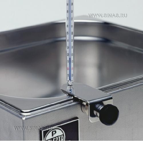 Для закрепления термометров в масляных и водяных банях, с винтом. Толщина стенок до 40 мм. Диаметр термометра до 7 мм.