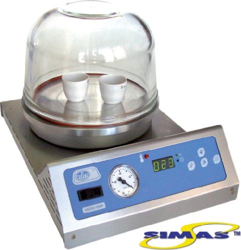 Электронный регулятор температуры, дисплей из 3 ячеек. Температурный датчик Pt 100. Плоская поверхность из полированного алюминиевого сплава с эффективным вакуумным уплотнением. Закрытый нагревательный элемент. Наружный корпус из нерж. стали AISI 304. Соединение для вакуумного насоса на задней стенке прибора.Колпак из закаленного стекла с силиконовой прокладкой. Клапан для сброса вакуума.