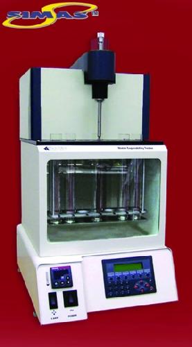 Спроектирован таким образом, чтобы не перемещать образцы при введении лопастей мешалки в каждый тестовый цилиндр. Электронное управление предоставляет большой диапазон выбора скорости и времени перемешивания. Текущие значение скорости и время оставшееся до конца испытания отображаются на дисплее большого размера. Диапазон скоростей перемешивания составляет от 0-2000 об/мин с точностью 1 об/мин, а установки таймера 0-99.99 мин. По истечении установленного времени прибор подает звуковой сигнал и отображает сообщение на дисплее. Для удобства пользователя раннее установленные параметры сохраняются в памяти и применяются для последующих испытаниях до тех пор пока они не будут изменены пользователем.