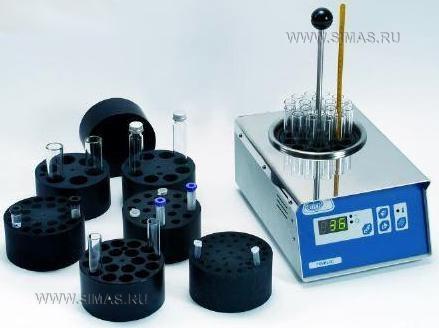 Технические характеристики: электронный регулятор температуры, заменяемые блоки для пробирок разного диаметра. Температура + 30 °С + 200 °С, Стабильность ± 0,75 °С, однородность ± 1,5 °С, погрешность ± 2 °С, дискретность 1 °С.