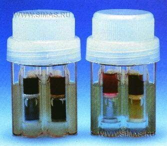 Описание: Salmonella Rapid Test – система, предназначенная для выявления подвижных бактерий рода Salmonella в образцах пищевых продуктов и пробах из производственных помещений. Состоит из прозрачной полимерной ёмкости и помещённых в неё двух пробирок, каждая из которых содержит свой набор из двух сред: селективной (в нижней части) и индикаторной (в верхней части), разделённых пористой перегородкой. Жидкая элективная среда, в полимерной ёмкости, инокулируется культурой обогащения. Подвижные сальмонеллы мигрируют через селективную среду в индикаторную, которая при этом изменяет свой цвет.
